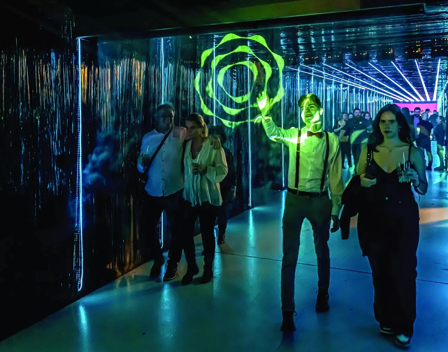 A futuristic feature where visuals are projected onto a mist screen that guests can walkthrough without getting wet. This striking effect allows moving images, colors, and visual effects to be displayed in a truly magical way. The installation can be delivered with ready-made content or fully customized to match your event’s theme. Completed setup within a single day quickly and seamlessly.